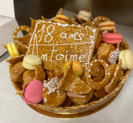 En dehors de la période de fabrication des pièces montées, nous pouvons proposer la réalisation de coupelle nougatine garnie de choux caramel, ou des pièces montées réalisées avec un support (consigné) où les choux ne sont pas collés entre-eux.