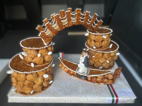 2- Pièce montée à étages en nougatine , ou forme de chiffre ou en cœur.